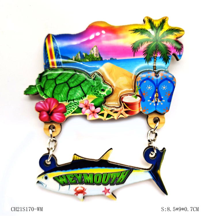 3D pritaikomas Viduržemio jūros regiono dizaino suvenyrinis šaldytuvo magnetas. Turi unikalią formą su pritvirtinta grandine, puikiai tinka paplūdimio turizmui. Sukurtas iš aukštos kokybės medžiagų ir tvirto magnetinio pagrindo, jis suteikia tiek dekoratyvinį žavesį, tiek praktišką funkcionalumą bet kokiam magnetiniam paviršiui.