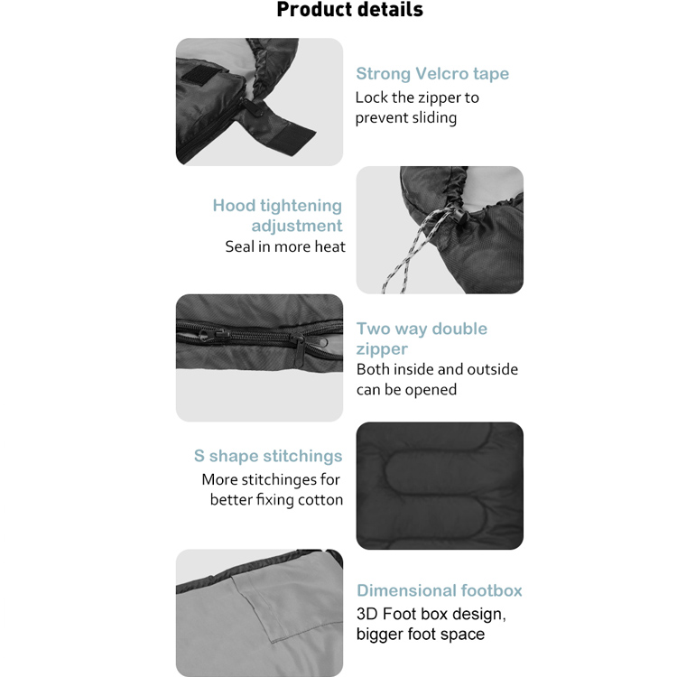 Šis miegmaišis, sukurtas nuotykiams lauke ištisus metus, užtikrina patikimą šilumos izoliaciją nuo vasaros naktų iki žiemos stovyklavimo, platus komforto diapazonas, tinkantis įvairioms klimato sąlygoms ir sezoniniams pokyčiams.