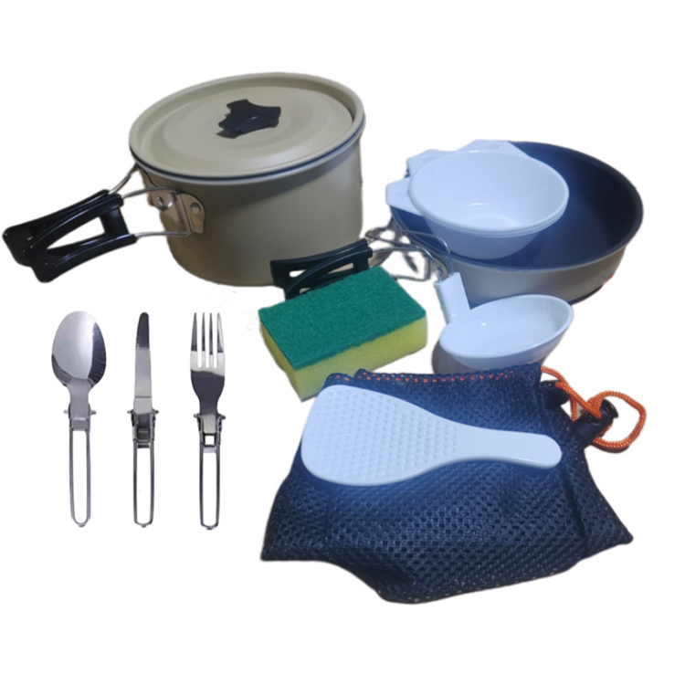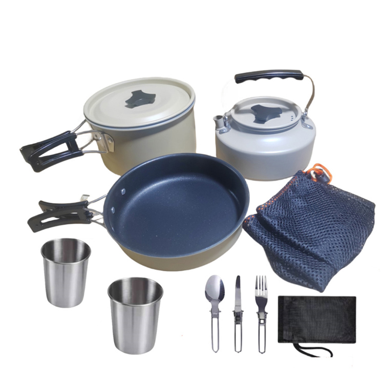Į komplektą įeina idealaus dydžio virdulys, keli puodai ir keptuvės, skirtos paruošti pilną maistą mažoms grupėms, todėl nereikia papildomų virtuvės reikmenų kelionių stovyklavimo metu.