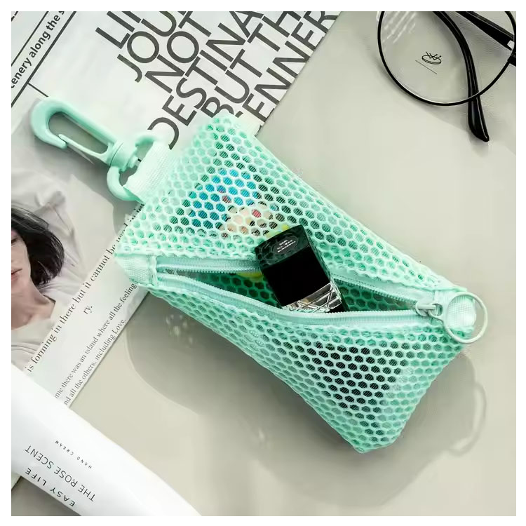Įstrižainė mažos užtrauktuko monetų piniginės akių lūpų dažų krepšys. Įpratę tinklelio mini užtrauktuko maišelis Keychain mažas monetų maišelis, skirtas monetoms, lūpų dažams ar ausinėms. Lengvas ir kvėpuojantis dizainas su kabliuku, kad būtų lengva pakabinti ant kuprinių, rankinių ar mokyklų krepšių. Puikus individualizuotas priedas, skirtas kasdieniam naudojimui ar kelionei.