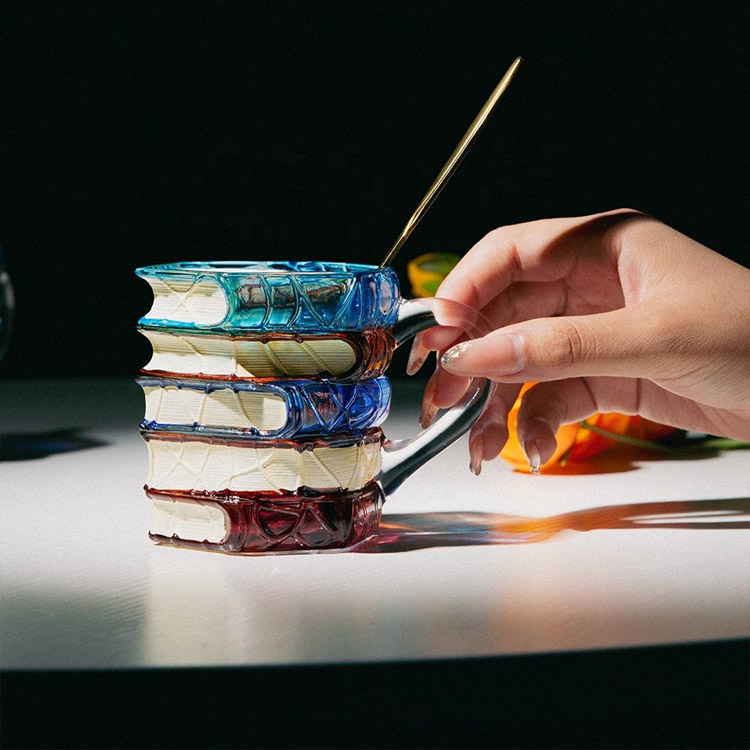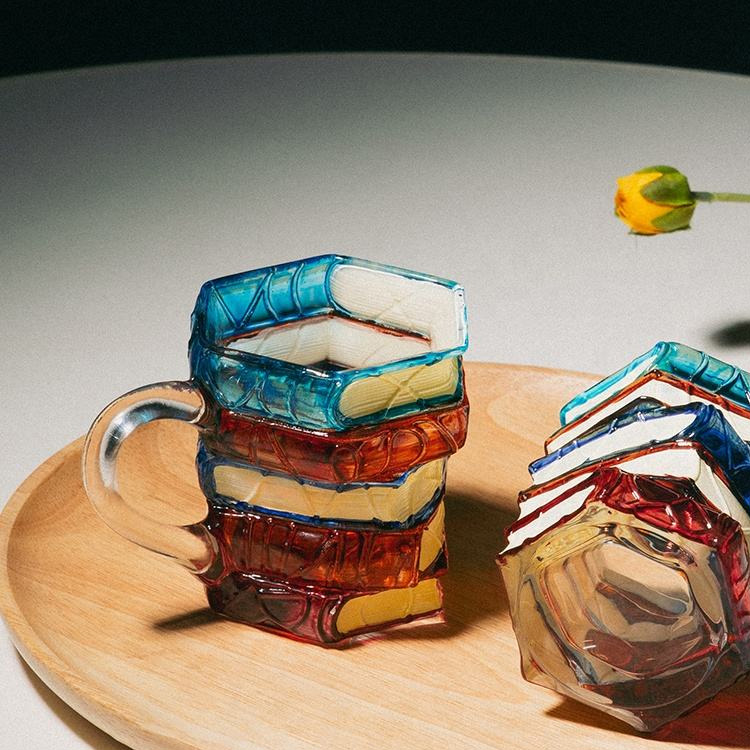 Rankomis dažytas stiklinis kavos puodelis 3D dažytos knygos kavos puodelis