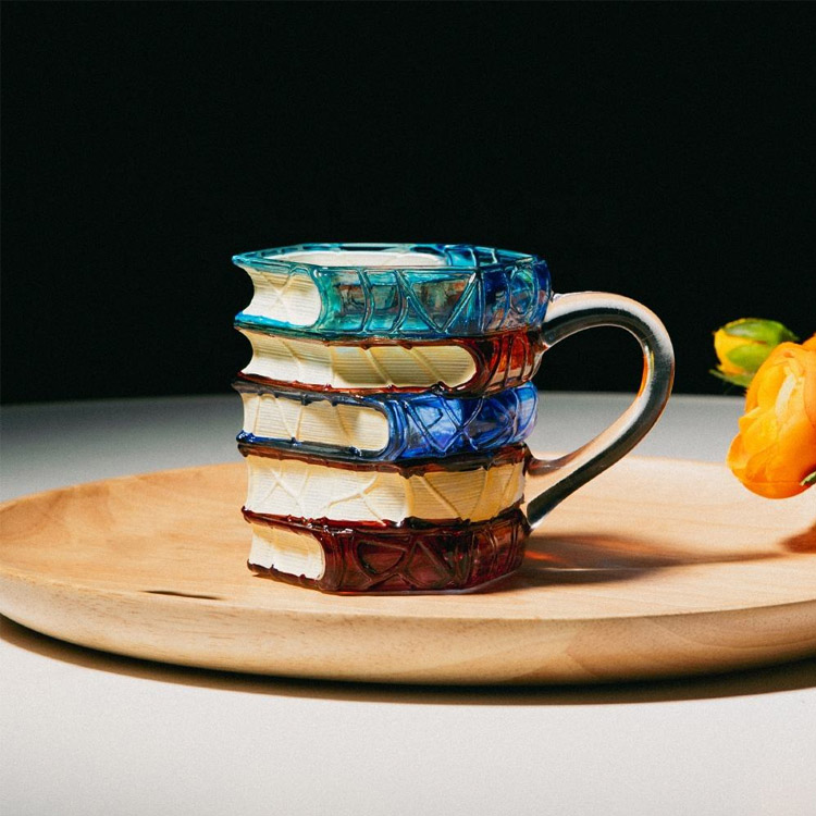 Šis kūrybingas kavos puodelis pasižymi stulbinančiu 3D sukrautų knygų dizainu, todėl jis yra puikus meniškumo ir funkcionalumo derinys. Kiekviena detalė, nuo tekstūruotų knygos nugarėlių iki tikroviškų puslapių, yra kruopščiai sukurta, kad džiugintų knygų mylėtojus ir kolekcionierius.