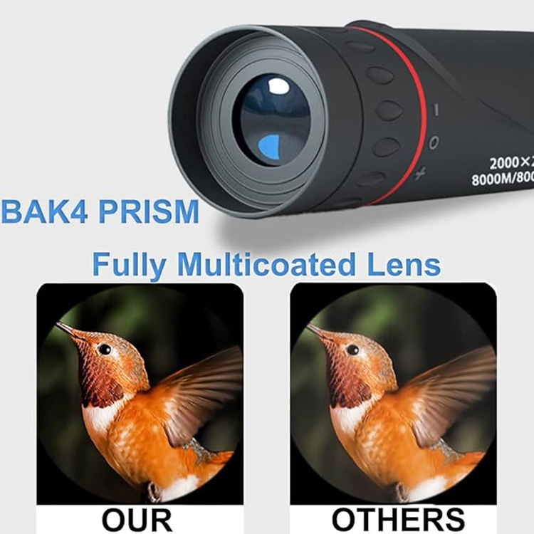 Didelės raiškos lauko kempingo tolimojo nuotolio teleskopas. Jūsų puikus nešiojamas stebėjimo įrankis nuotykiams lauke. Šis 8x didelės raiškos monokulinis teleskopas užtikrina aiškų vaizdą iš toli ir kompaktiško dizaino. Puikiai tinka stovyklavimui, žygiams pėsčiomis ir laukinės gamtos stebėjimui. Jis suderina galingą našumą ir išskirtinį nešiojamumą.