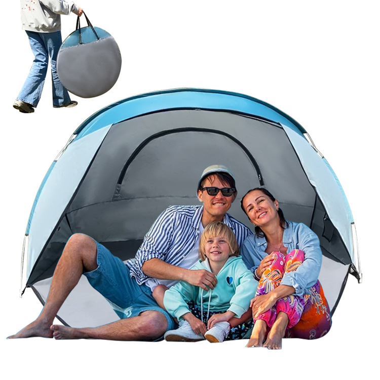 Aukštos kokybės 4 suaugusiems skirta greitai atidaroma glamping lauko paplūdimio palapinė. Jūsų puiki šeimos pastogė prabangiems potyriams lauke. Šioje aukštos kokybės palapinėje su greito atidarymo sistema telpa keturi suaugusieji. Pagaminta iš patvaraus Oksfordo audinio, užtikrina visišką apsaugą nuo lietaus ir saulės nuotykiams paplūdimyje ir stovyklaujant.