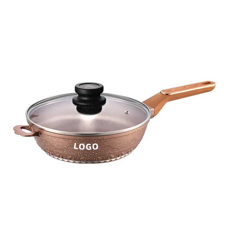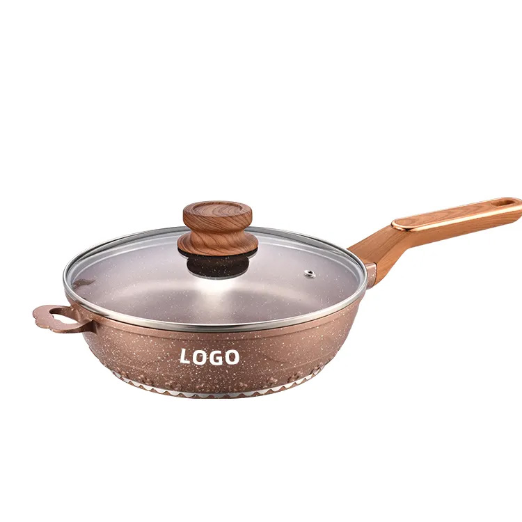 Aukštos kokybės nelipnios dangos aliuminio lydinio virtuvės keptuvė. Ši aukštos kokybės OEM gilus frypanas pasižymi patvaria aliuminio lydinio konstrukcija su nelimpos danga, kad būtų galima lengvai virti ir valyti. Apvali forma užtikrina tolygų šilumos pasiskirstymą, o stiklo dangtis padeda išlaikyti šilumą ir drėgmę, kad būtų geresni virimo rezultatai.