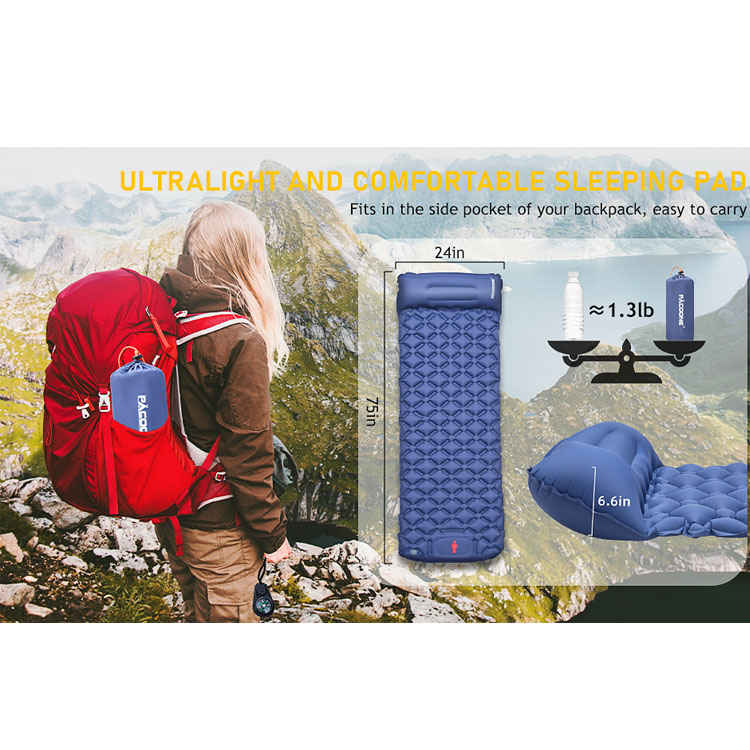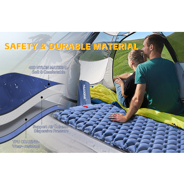 Lengvos nailono medžiagos sulankstomas kempingo palapinės miegamasis. Puikus nešiojamas miego sprendimas nuotykiams lauke. Šis itin lengvas pripučiamas čiužinys yra pripučiamas vienu paspaudimu ir integruota pagalvės konstrukcija. Pagaminta iš patvarios nailono medžiagos, užtikrina puikų komfortą žygiams ir stovyklavimui, užtikrinant ramias naktis bet kur.