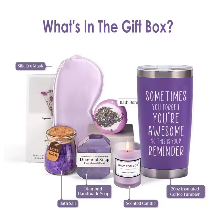 Kiekvienoje Lunaire dovanų dėžutėje yra puikiai suderintas daiktų pasirinkimas, pavyzdžiui, nerūdijančio plieno puodelis, aromaterapinė žvakė, rombo formos muilas, džiovintos gėlės ir sveikinimo atvirukai. Šis dovanoti paruoštas rinkinys sutaupo jūsų laiko ir suteikia visapusišką, nuoširdų potyrį bet kokiai progai.