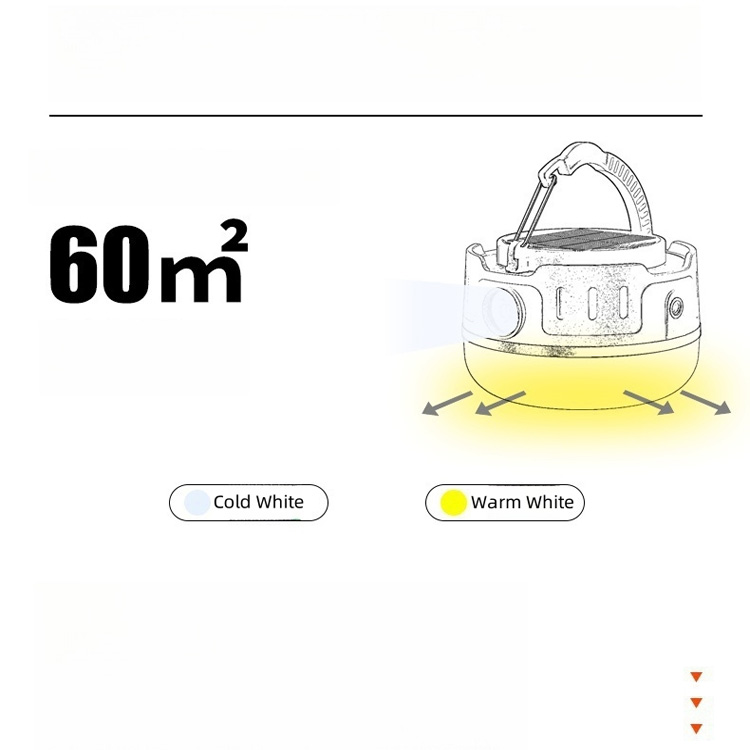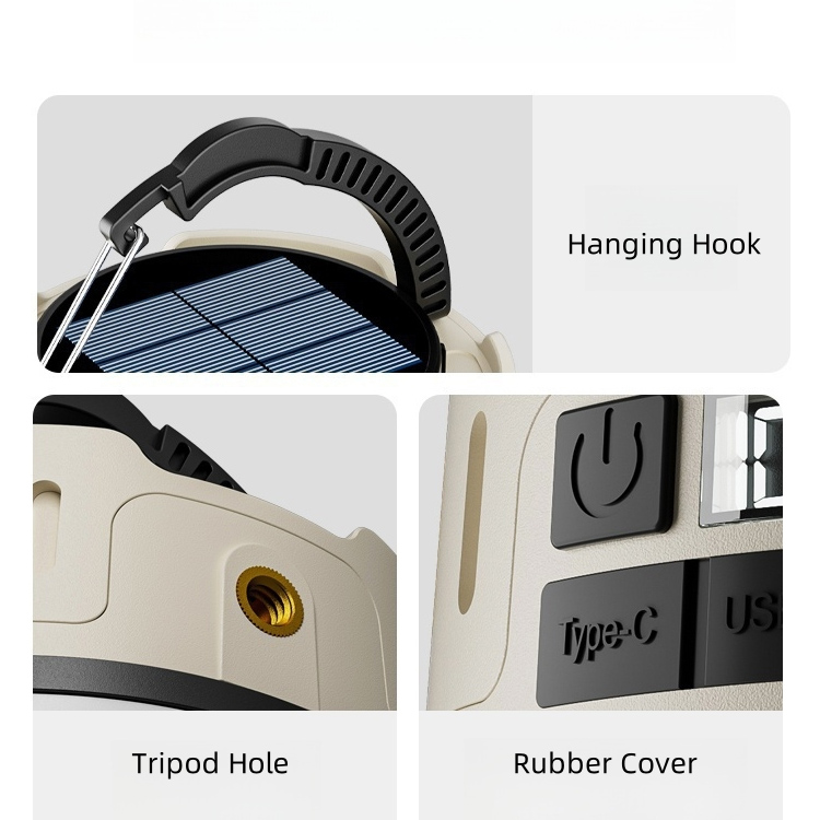 Gamintojo aukštos kokybės lauko kempingo LED palapinės lempa. Pagyvinkite savo nuotykius su šiuo 2025 m. naujo modelio lauko saulės kempingo šviestuvu. Su aukštos kokybės šviesos diodais, saulės energijos įkrovimu ir keliais apšvietimo režimais puikiai tinka palapinėms, žygiams pėsčiomis, ekstremalioms situacijoms ir veiklai lauke – jūsų patikimas šviesos šaltinis bet kur ir bet kada.