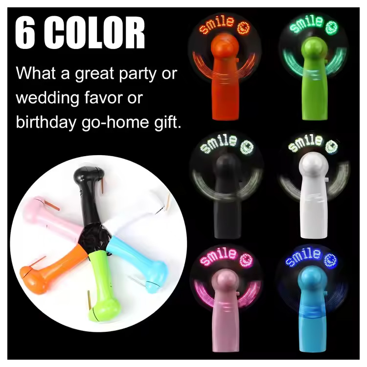Šis unikalus ventiliatorius rodo jūsų pasirinktinį pranešimą ryškiomis LED lemputėmis, kai jis sukasi – puikiai tinka šūkiams, vardams, sveikinimams ar prekės ženklo reklamai. Suasmeninkite, kad nustebintumėte draugus vakarėliuose arba padidintumėte matomumą parodose ir renginiuose.