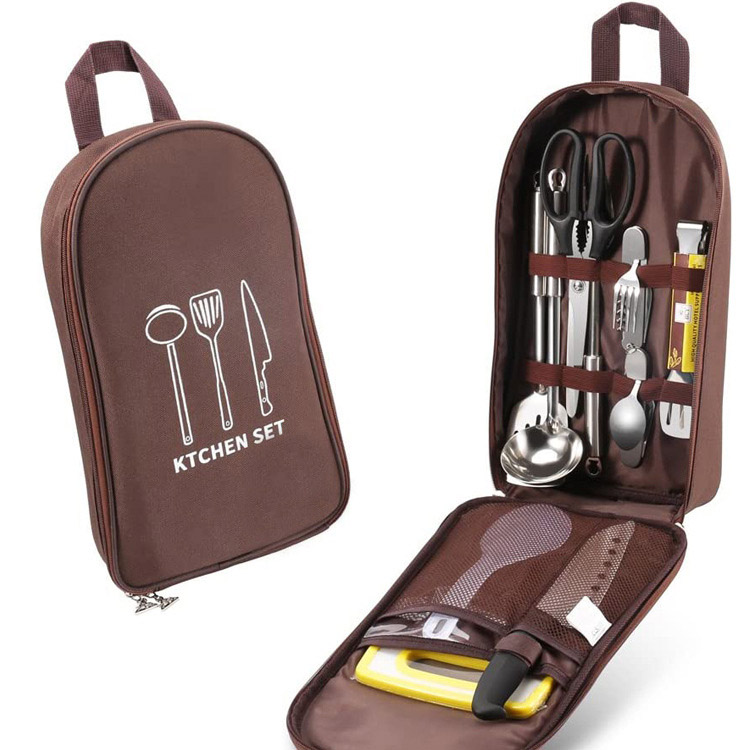 Lauko virtuvės reikmenų laikymo krepšys Oxford Camping Organizer. Jūsų viskas viename sprendimas organizuotam pietums lauke. Šis nešiojamas virtuvės reikmenų laikymo krepšys, pagamintas iš patvarios Oksfordo medžiagos, saugiai talpina šaukštus, lazdeles ir įvairius virtuvės reikmenis. Puikus kelionių stovyklavimo, žygių žygių ir šeimos iškylų organizatorius.