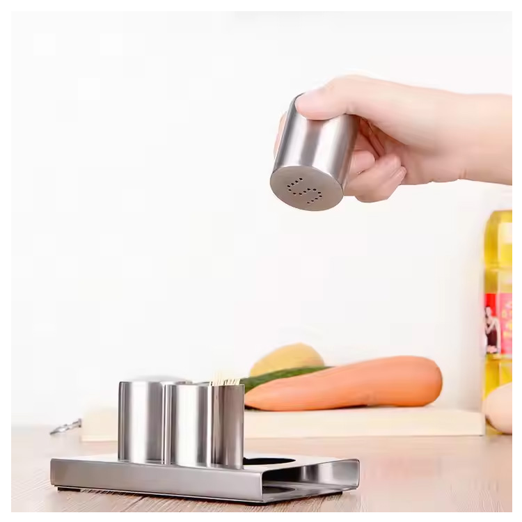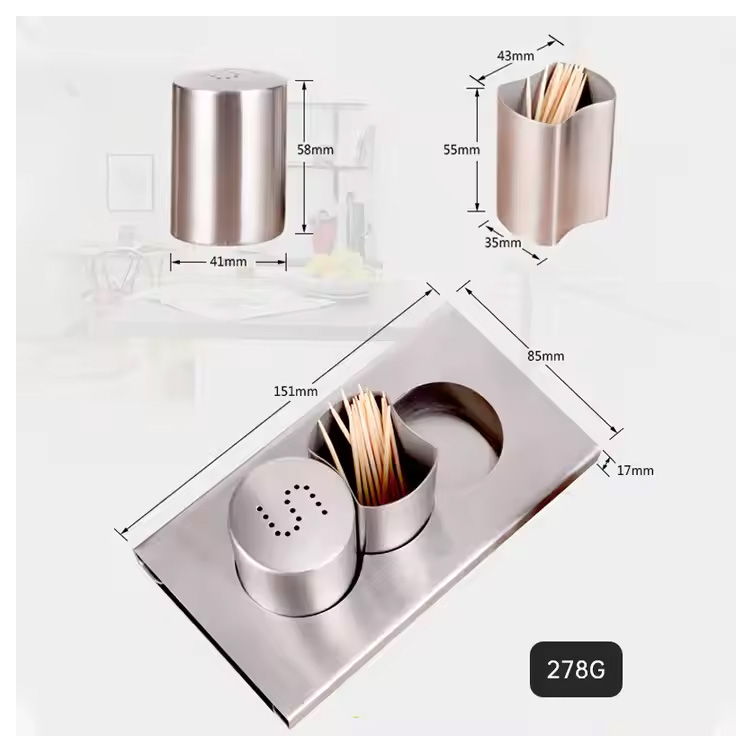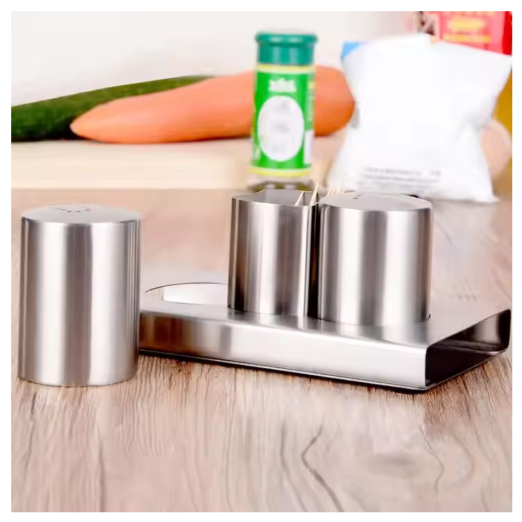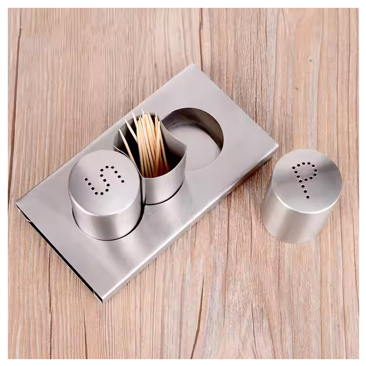 „Pepper Bottle“ virtuvės reikmenys Kūrybiniai prieskoniai Jar BBQ.Stainless plieno prieskonių buteliukų komplektas su dantų krapštuko laikikliu derina stilių ir funkcionalumą, puikiai tinkantį virtuvei, kepsninei ar valgomojo stalui. Patvarus, atsparus rūdijoms ir lengvai valomas, jis palaiko druskos, pipirų ir dantų krapštukus, sutvarkytus aptakiu, moderniu dizainu.