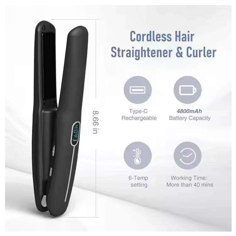 Nešiojamasis „2-in-1“ mini belaidžių plaukų tiesintuvas ir garbanojimo geležis bet kuriuo metu, bet kurioje vietoje su šiuo nešiojamu „2-in-1“ mini belaidžio plaukų tiesintuvu ir garbanu. USB atnaujinamas ir lengvai naudojamas, jis’puikiai tinka studentams ir šeimoms formuoti išorinius ir vidinius kirpčiukus be vargo—Kompaktiškas, saugus ir paruoštas kelionėms.