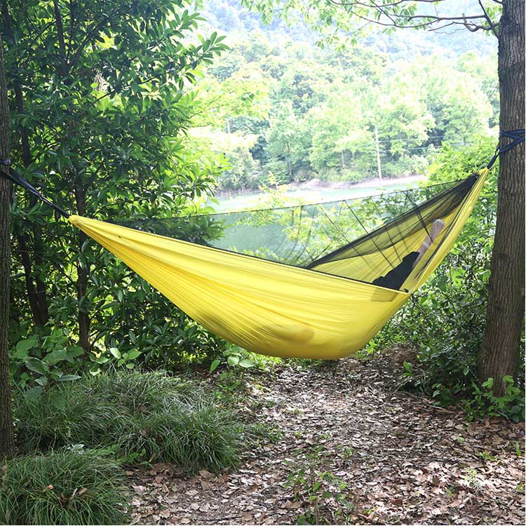 Su 210T poliesterio tinkleliu nuo uodų su sustiprintais kraštais ir 70D nailono hamako korpusu, sukuriančiu puikią pusiausvyrą tarp kvėpuojančios apsaugos nuo vabzdžių ir patvarios svorio.