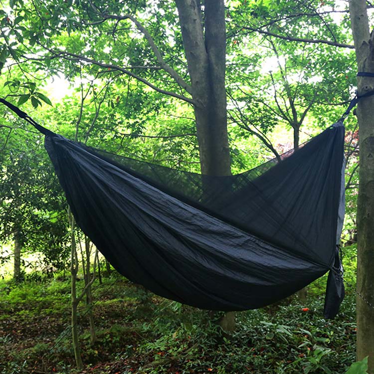 Smulkaus tinklelio tinklelis visiškai apgaubia hamaką su užtrauktuku užsegama įėjimo sistema, sukuriant nepraeinamą barjerą nuo uodų ir kitų kandančių vabzdžių, išlaikant puikų oro srautą.