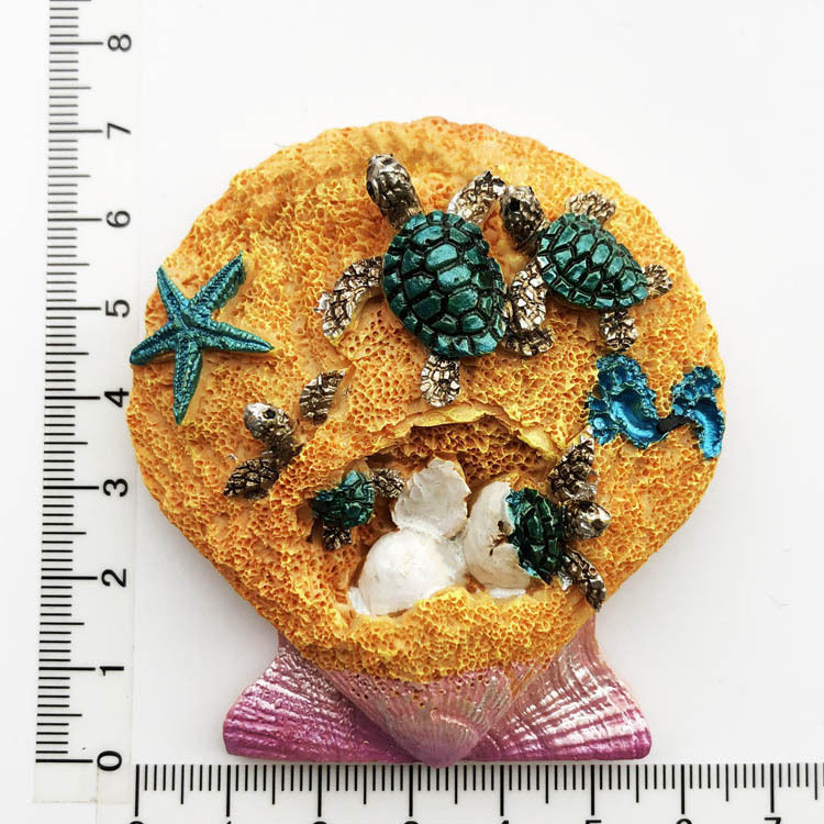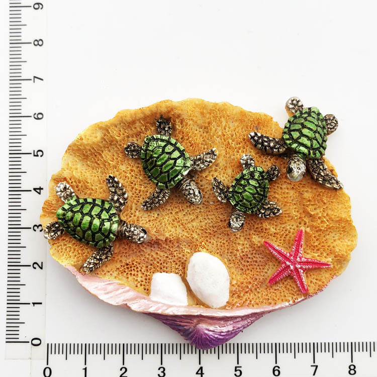 Žvaigždžių vėžlio formos rankomis dažytas dervos šaldytuvo magnetas. Didmeninė prekyba suvenyriniais kelioniniais šaldytuvo magnetais pasižymi kūrybišku jūros žvaigždžių ir vėžlių dizainu, meistriškai rankomis dažytu ryškiomis spalvomis. Pagaminta iš patvarios dervos, bet kuriai erdvei suteikia pakrantės žavesio, puikiai tinka dovanoti, kolekcionuoti ar kelionių atminimo reikmėms.