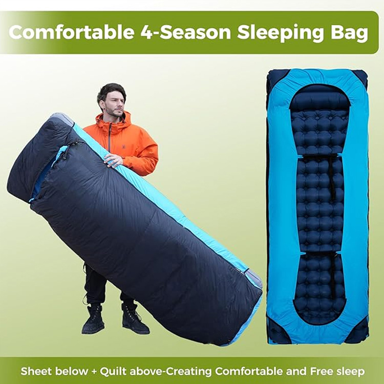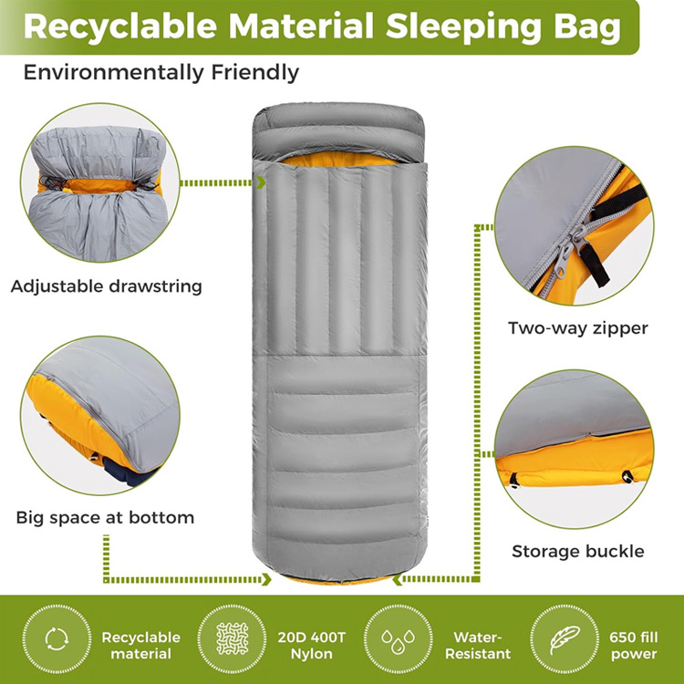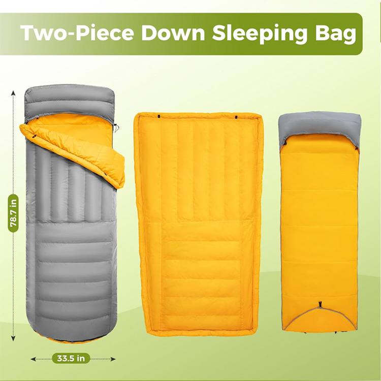 Itin lengvas kempingo antklodės antklodės ančių pūkų miegui. Jūsų išskirtinė keturių sezonų miego sistema, skirta nuotykiams laukinėje gamtoje. Šiame itin lengvame pūkiniame miegmaišyje yra aukščiausios kokybės ančių pūkų izoliacija ir integruotas pripučiamas pagalvėlis. Veikia kaip viršutinė antklodė ir miegmaišis, suteikia maksimalią šilumą nepakenkdamas svoriui.