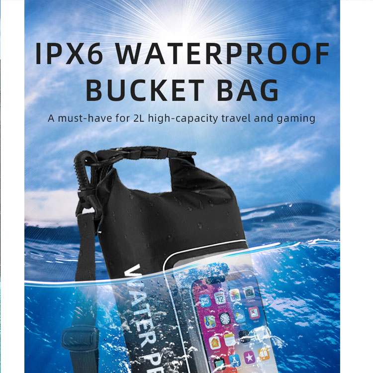 Pagaminta iš tvirtos 500D PVC medžiagos su aukšto dažnio suvirintomis siūlėmis ir vandeniui atspariais užtrauktukais, garantuojančiais absoliučią apsaugą nuo vandens patekimo į bet kokią vandens aplinką.