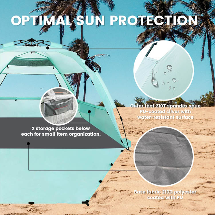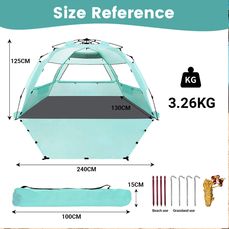 Didmeninė prekyba itin lengvu poliesterio šešėliu nuo saulės paplūdimio palapinė. Jūsų aukščiausios kokybės didmeninis paplūdimio apsaugos nuo saulės sprendimas. Ši itin lengva poliesterio palapinė nuo saulės turi patogų iššokantį sulankstomą dizainą. Puikiai tinka masiniam naudojimui paplūdimyje lauke. Lengvas panaudojimas suderinamas su patikimu šešėlių uždengimu.